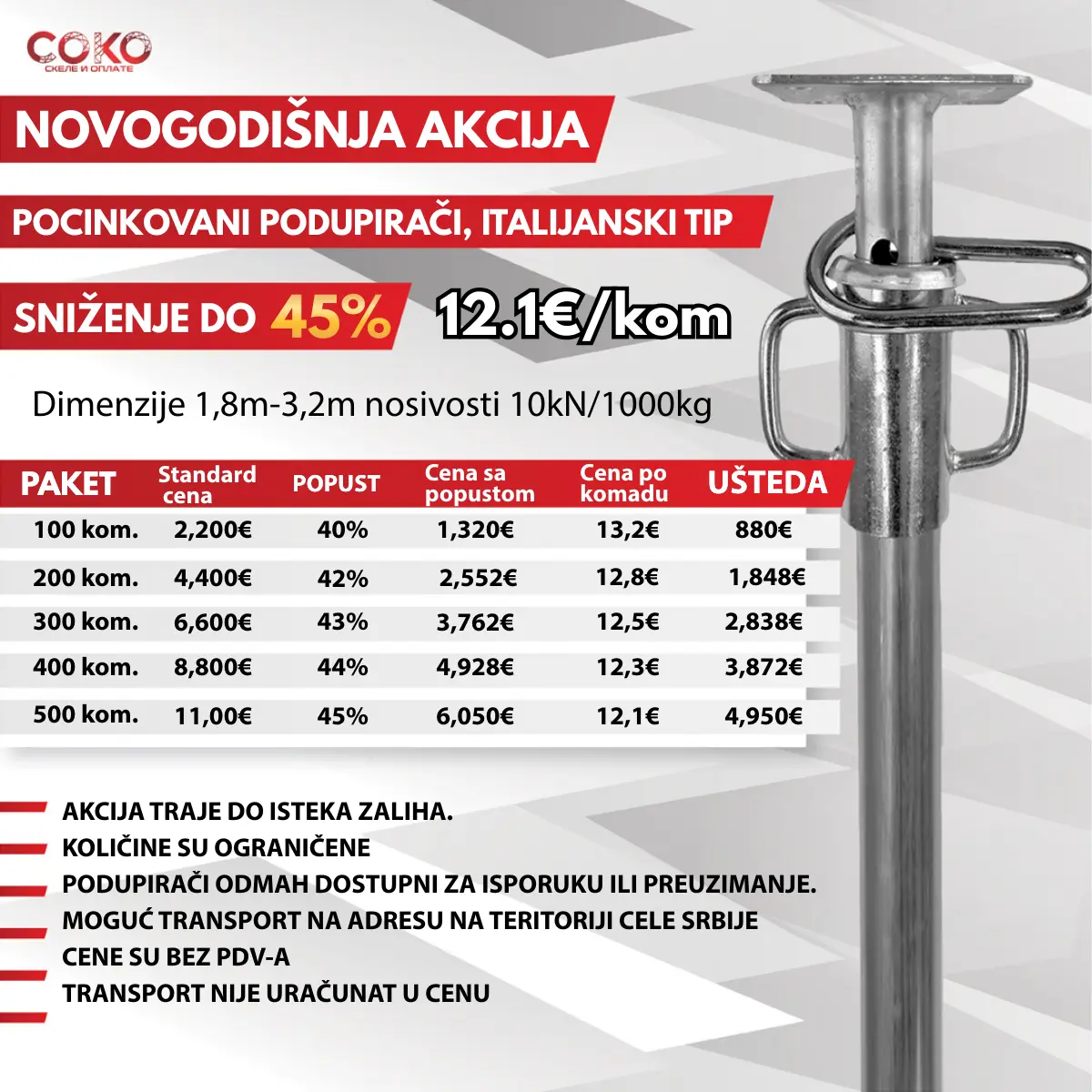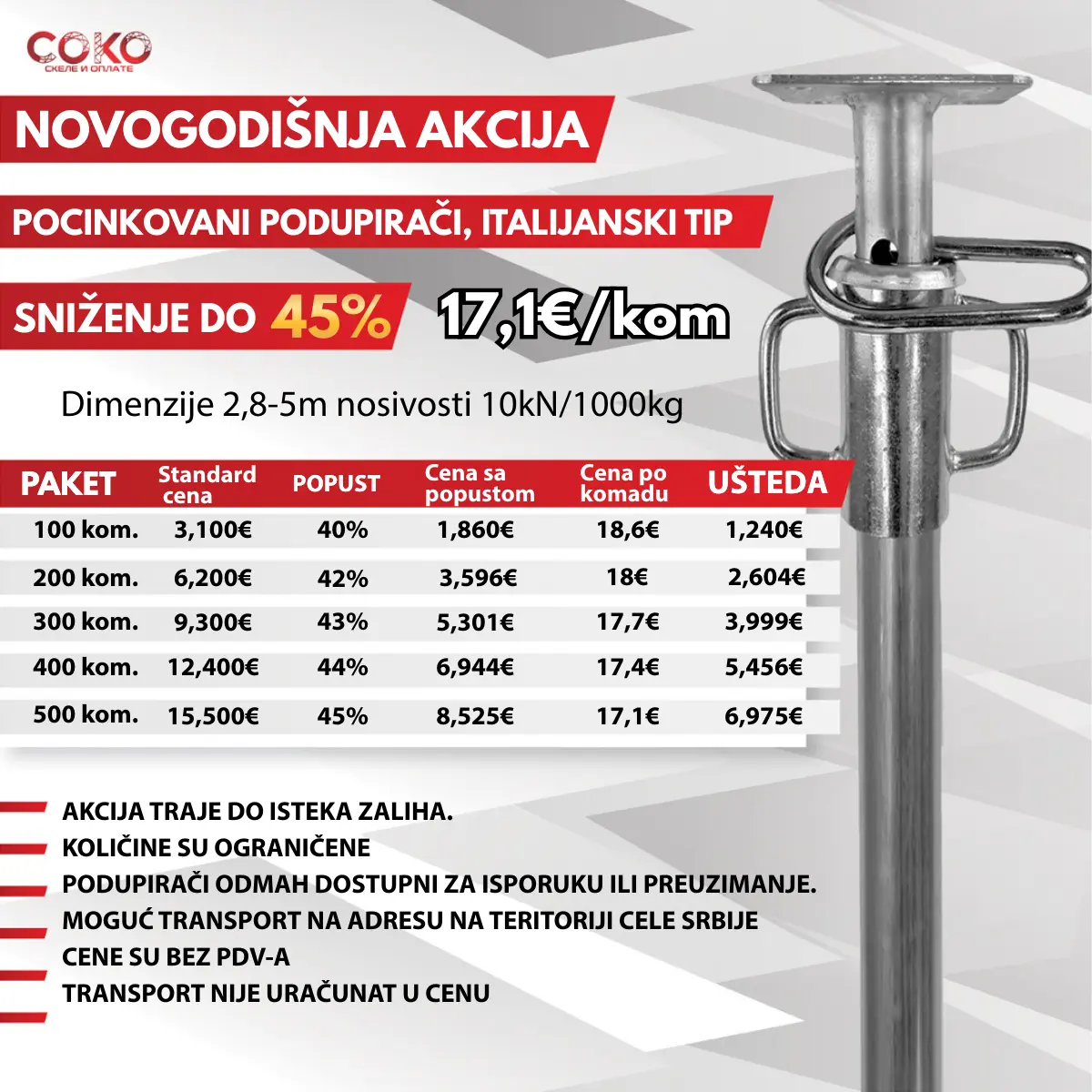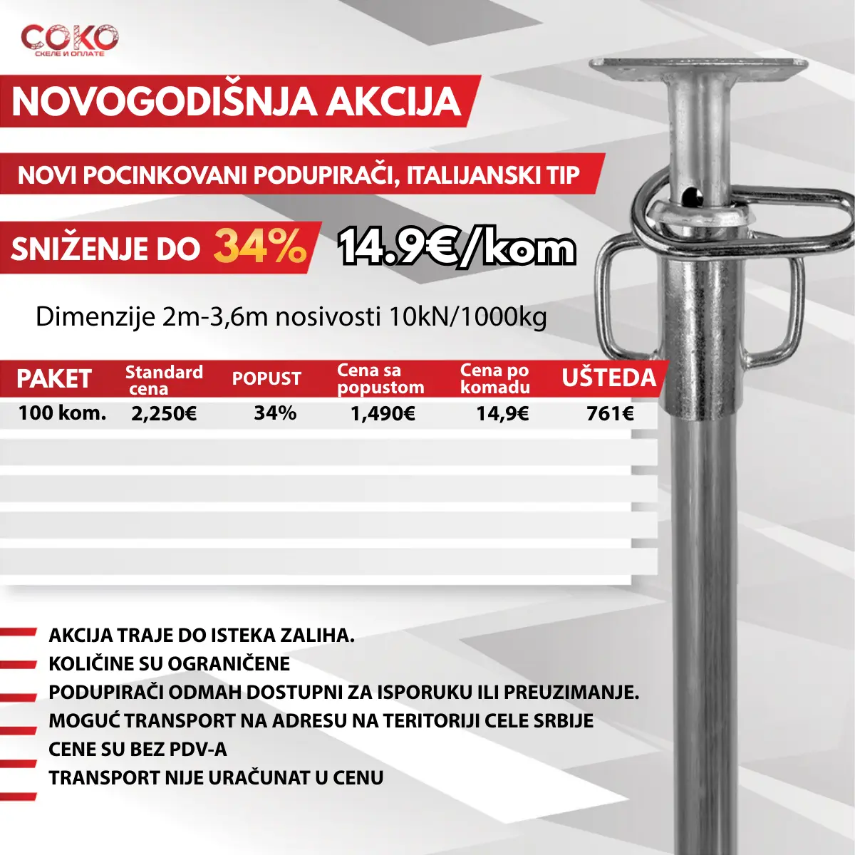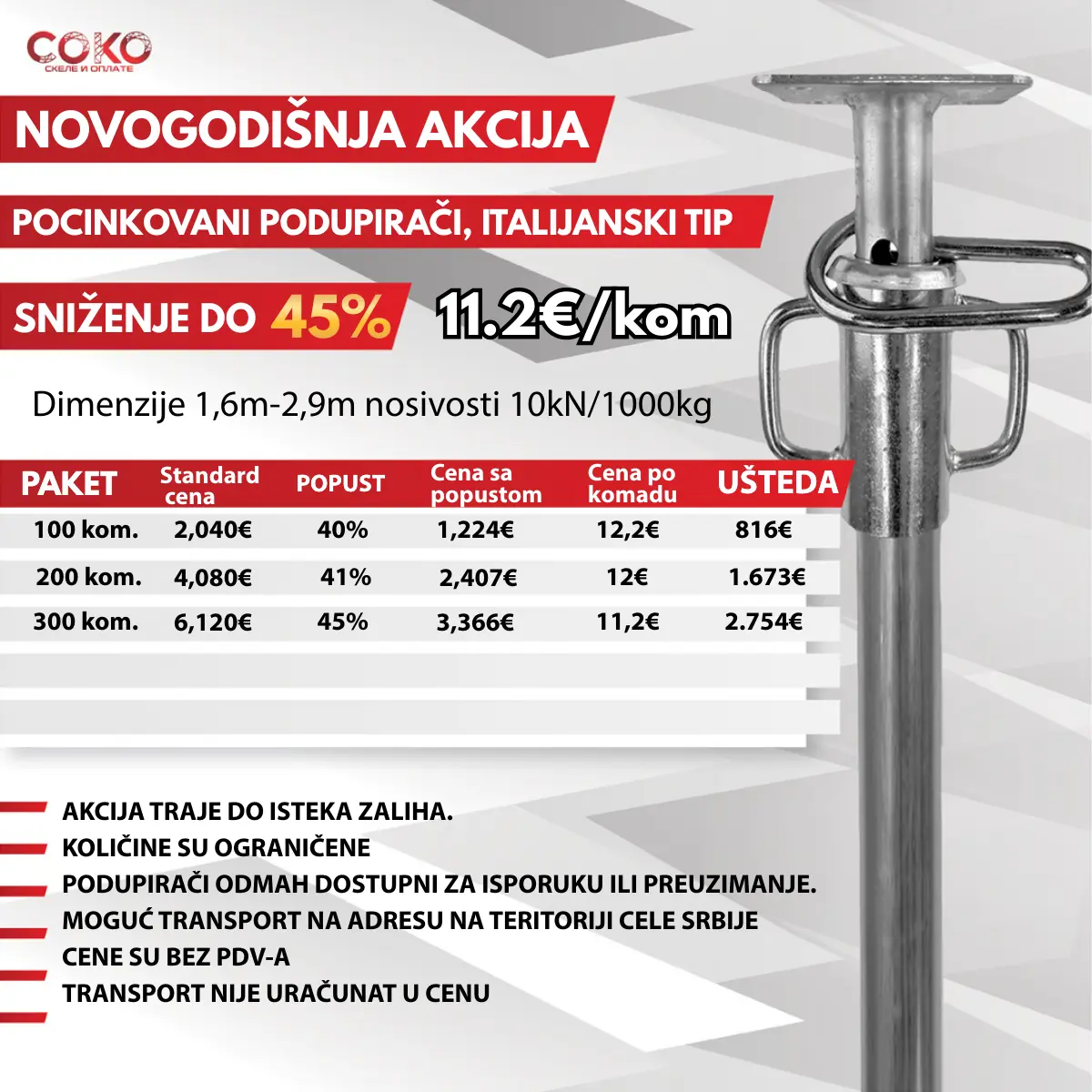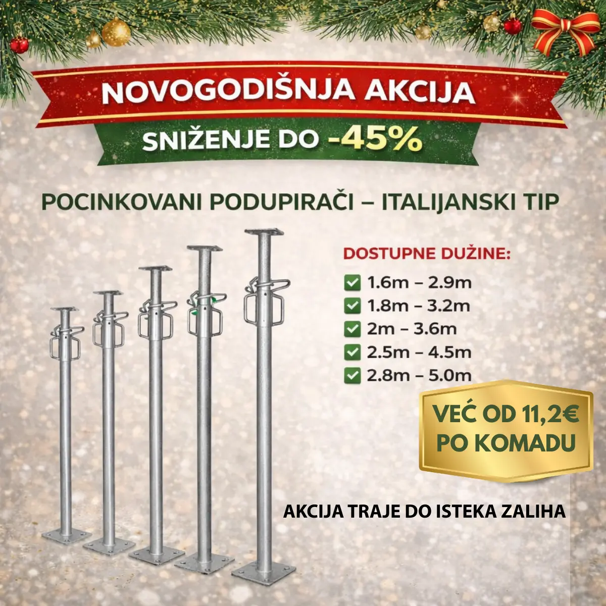 НОВОГОДИШЊА АКЦИЈА! НОВА СКЕЛА ВЕЋ ОД 13.8 евра по квадрату! Подупирачи већ од 11.2 евра по комаду!